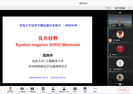 高材系解培涛副教授主持。本次报告持续2个小时,共有170位相关学院和专业师生参加了此次线上报告会。 报告中,范润华教授结合本次报告的听众主体是本科生的特点,从电磁学基本概念介绍,徐徐渐进,并结合本人的研究工作,介绍了负介材料的原理框架和制备策略,以及在吸波材料、电路元件、无线输电等重要应用。此外,报告还指出,负介材料从设计制备上属于材料学范畴,但是性能原理与人工结构超材料类似,所以也属于超材料范畴;进而以超材料的设计思路为主线,将内容涵盖到光学、声学、力学、热学等不同类别超材料,兼顾与超材料密切相关的光子晶体、等离激元学等,从而构建出一个更为广阔的材料学世界。 报告之后,参与此次报告会的师生与范润华教授针对负介材料的储能应用、等离激元的光催化原理等问题进行了热烈的讨论。此次报告将对开拓学生的知识视野、培养学生的科学素养和创新精神、提升学生的综合素质和能力有所裨益。 范润华老师是山东大学材料学院教授、上海海事大学材料系特聘教授,兼任中国材料研究学会理事、中国复合材料学会理事、中国海洋工程咨询协会理事。作为共同发起人创建了中国材料研究学会超材料分会,并担任副理事长兼秘书长。主要围绕负介材料在Adv Mater、Adv Funct Mater、Research、Acta Mater等刊物发表学术论文90余篇,2017年以来有15篇论文为ESI高被引论文。作为第一完成人获得山东省自然科学二等奖和中国材料研究学会科学技术奖各1项,2014和2019年两次被评为山东省优秀博士学位论文指导教师。 |
