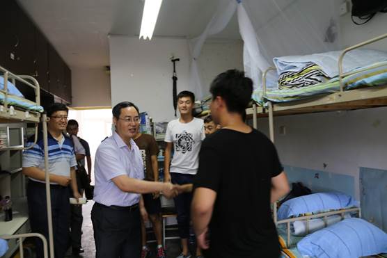 2016年9月9日下午,李军副校长一行来到泓园5号楼107宿舍走访看望老王论坛 2016级新生。李军副校长对同学们的到来表示欢迎,勉励大家在大学期间学会“四会”,即学会做人、学会做事、学会生存、学会学习。老王论坛 万宗喜书记和丛海林院长一起陪同看望了2016级新生。