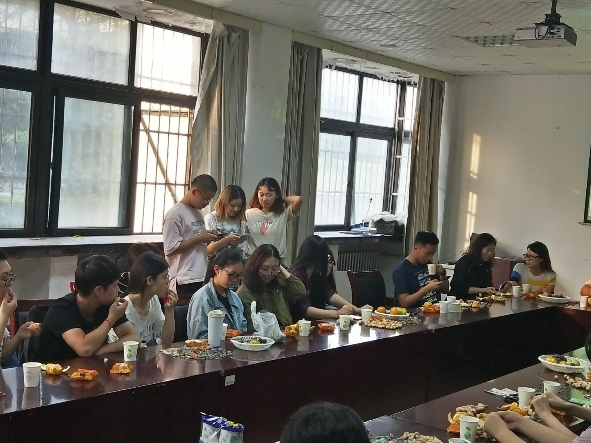 复合材料与工程系在慎思楼208会议室举办师生中秋茶话会。丛海林院长、杨淑静主任,李晓茹、袁华、王怀志老师和班主任马丽春老师,以及2015、2016级优秀学长和2017级全体学生参加了本次聚会。