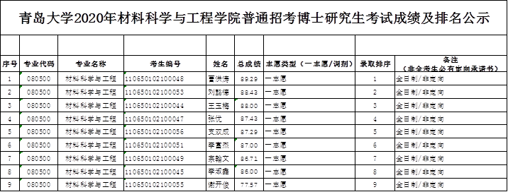 日经过专家材料审核、面试考核及学科意见,现将考生成绩公布如下: