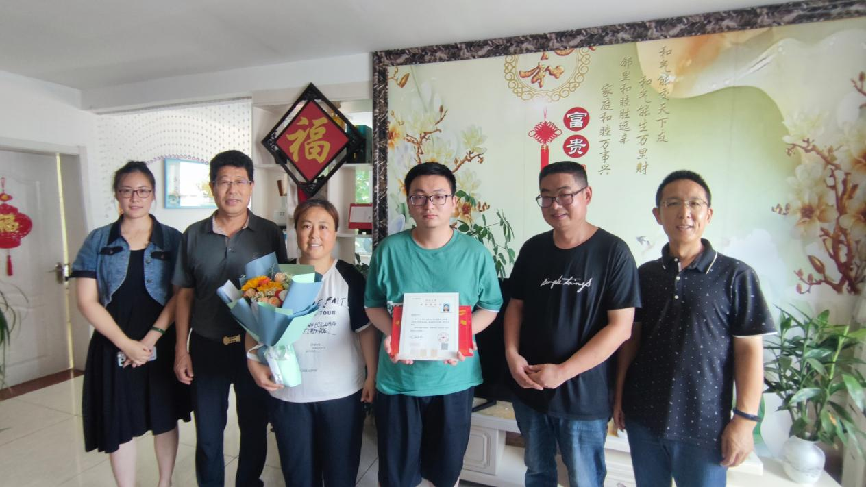 。8月2日上午,学院党委书记万宗喜、党政办主任薛玉章、学工办主任林国红一行来到胡伟昊同学家中,万书记亲手将这份惊喜带给了他。