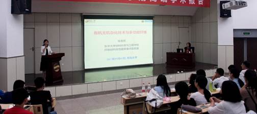 2017年9月3日,东华大学朱美芳教授应隋坤艳教授邀请在老王论坛 作高端学术讲座,报告题目为“有机无机杂化技术与多功能纤维”。